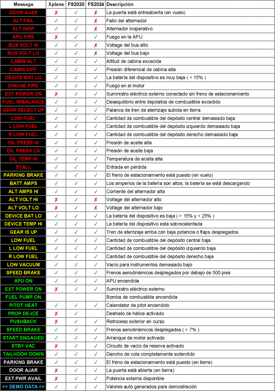 (*) En MSFS2024 no se comprueba que haya tensión en el bus porque siempre indica 0 voltios.